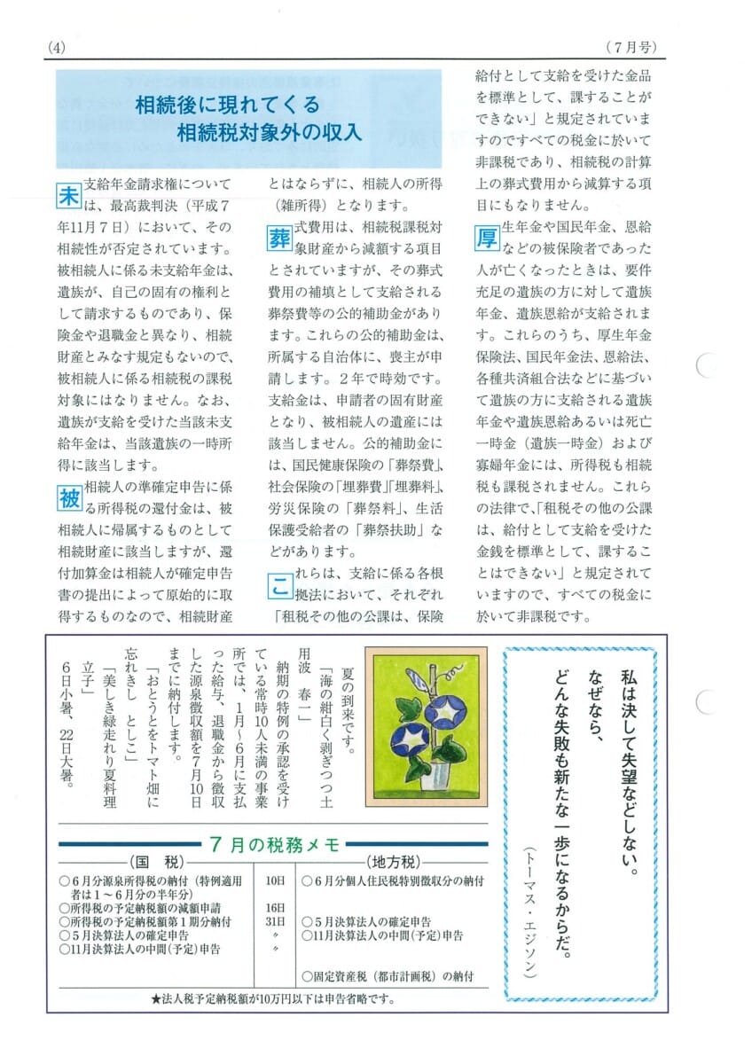 In the Tsujiuchi Tax Accountant Firm, we are releasing a part of tax accountant report which we will send monthly to the customers, including the back number.